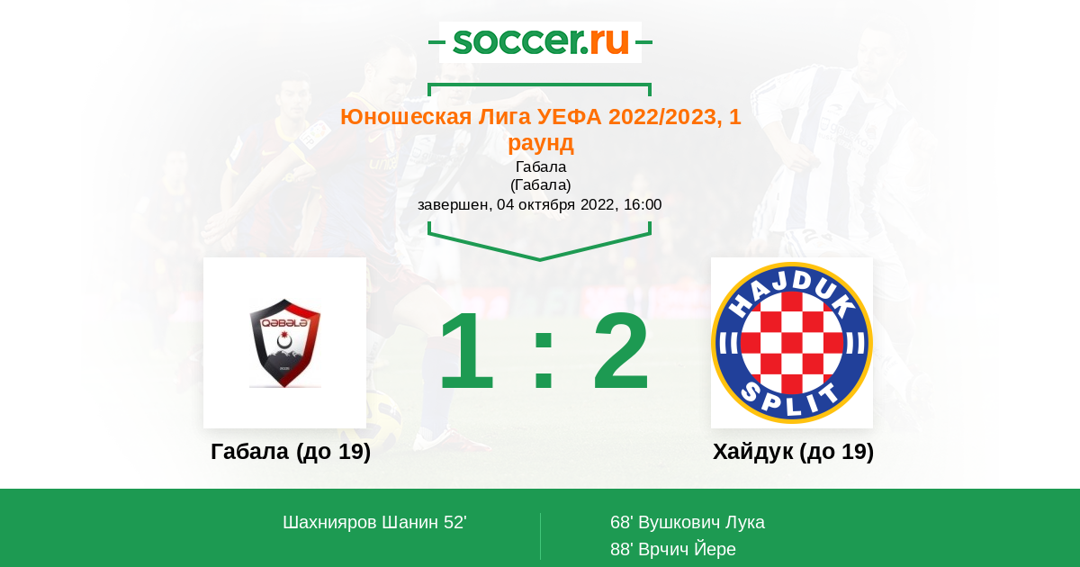 Протокол матча Габала (до 19) против Хайдук (до 19)