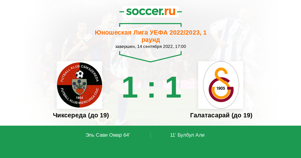 Протокол матча Чиксереда (до 19) против Галатасарай (до 19)