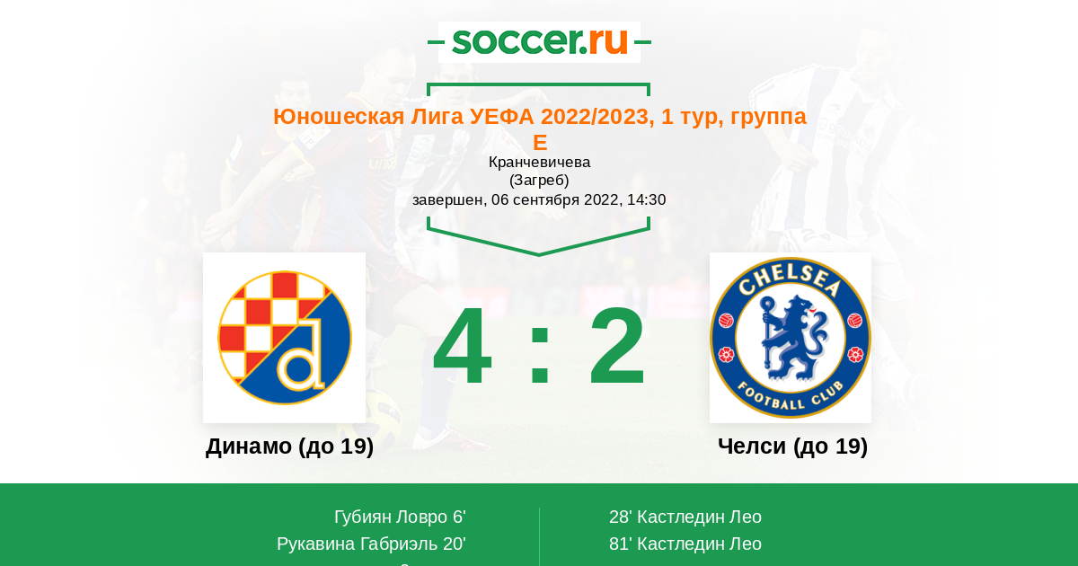 Протокол матча Динамо (до 19) против Челси (до 19)