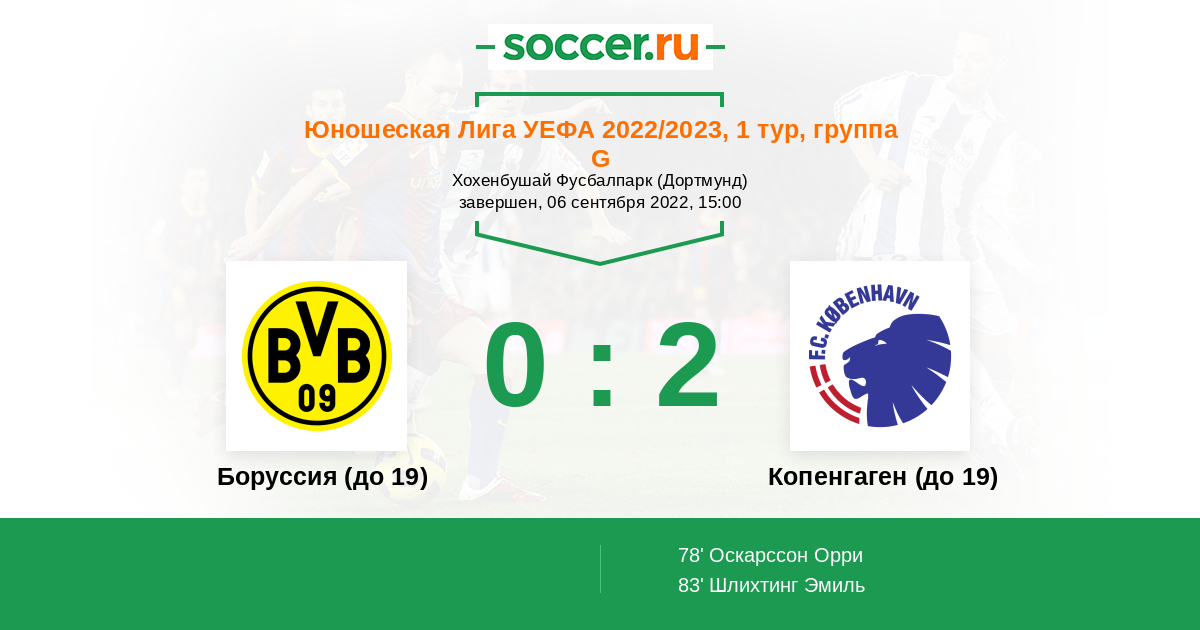 Протокол матча Боруссия (до 19) против Копенгаген (до 19)