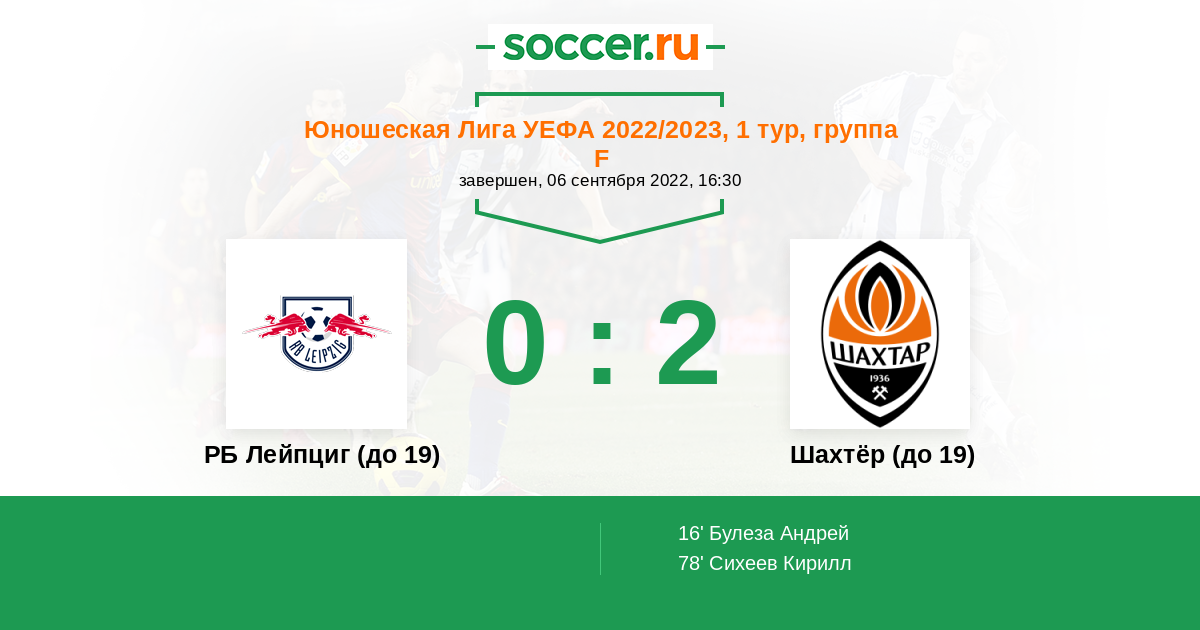 Протокол матча РБ Лейпциг (до 19) против Шахтёр (до 19)