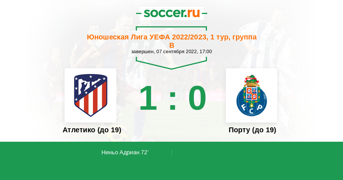 Протокол матча Атлетико (до 19) против Порту (до 19)