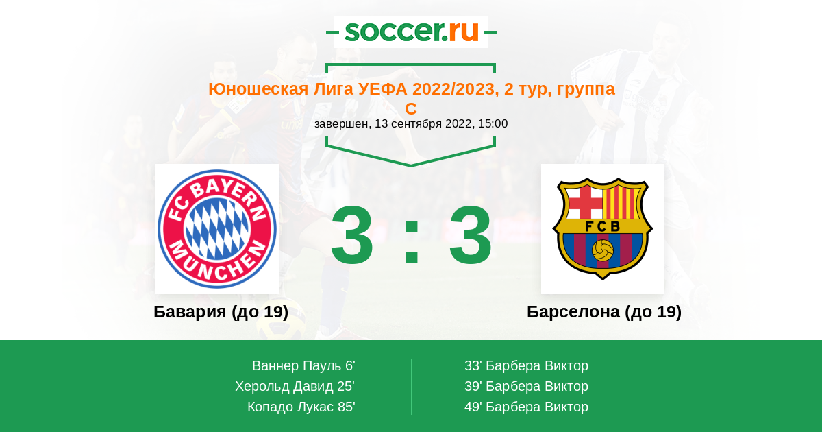 Протокол матча Бавария (до 19) против Барселона (до 19)