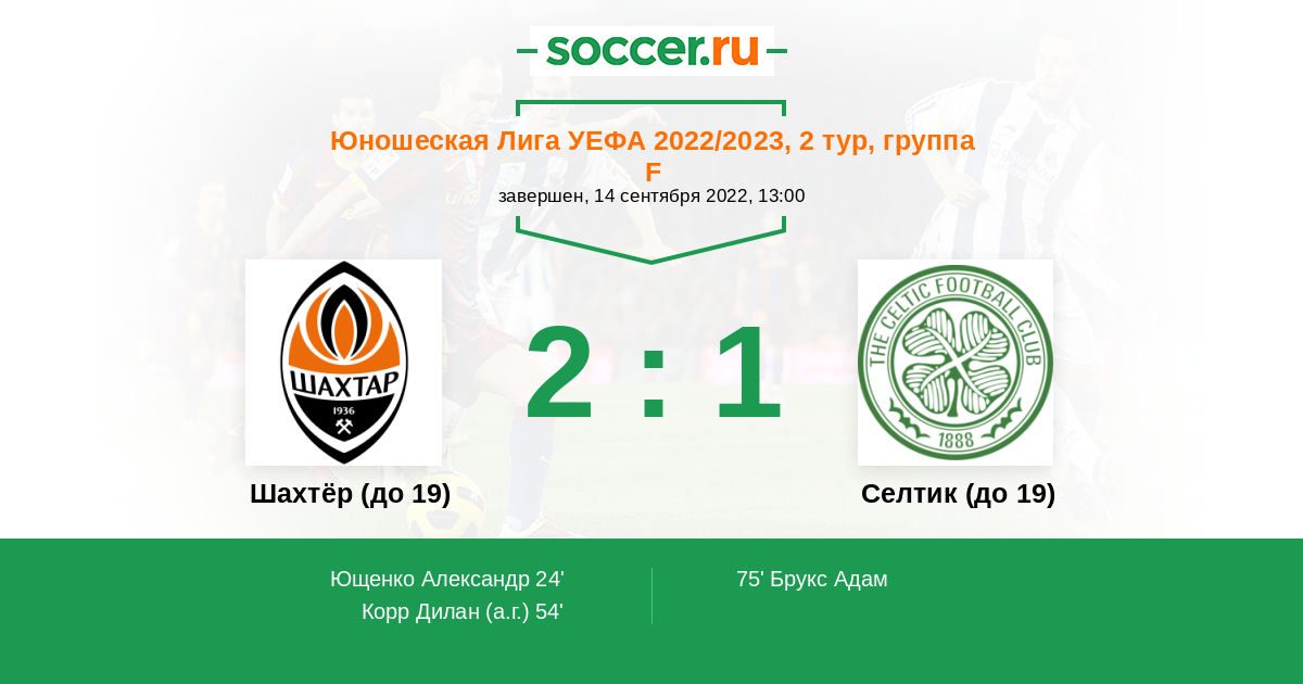 Протокол матча Шахтёр (до 19) против Селтик (до 19)
