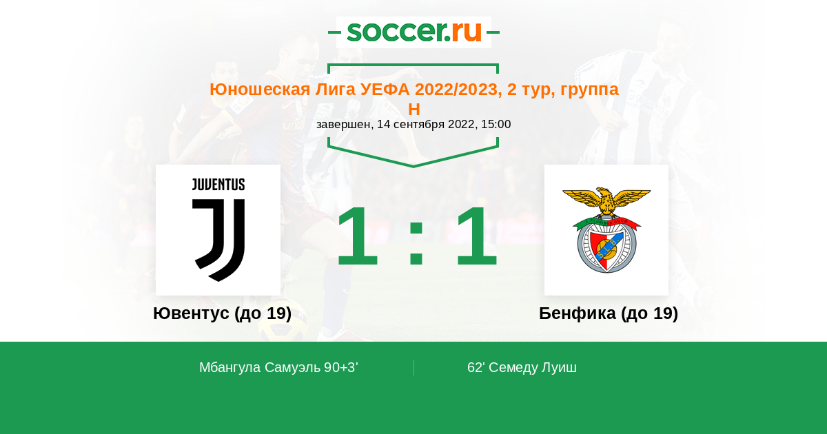 Протокол матча Ювентус (до 19) против Бенфика (до 19)