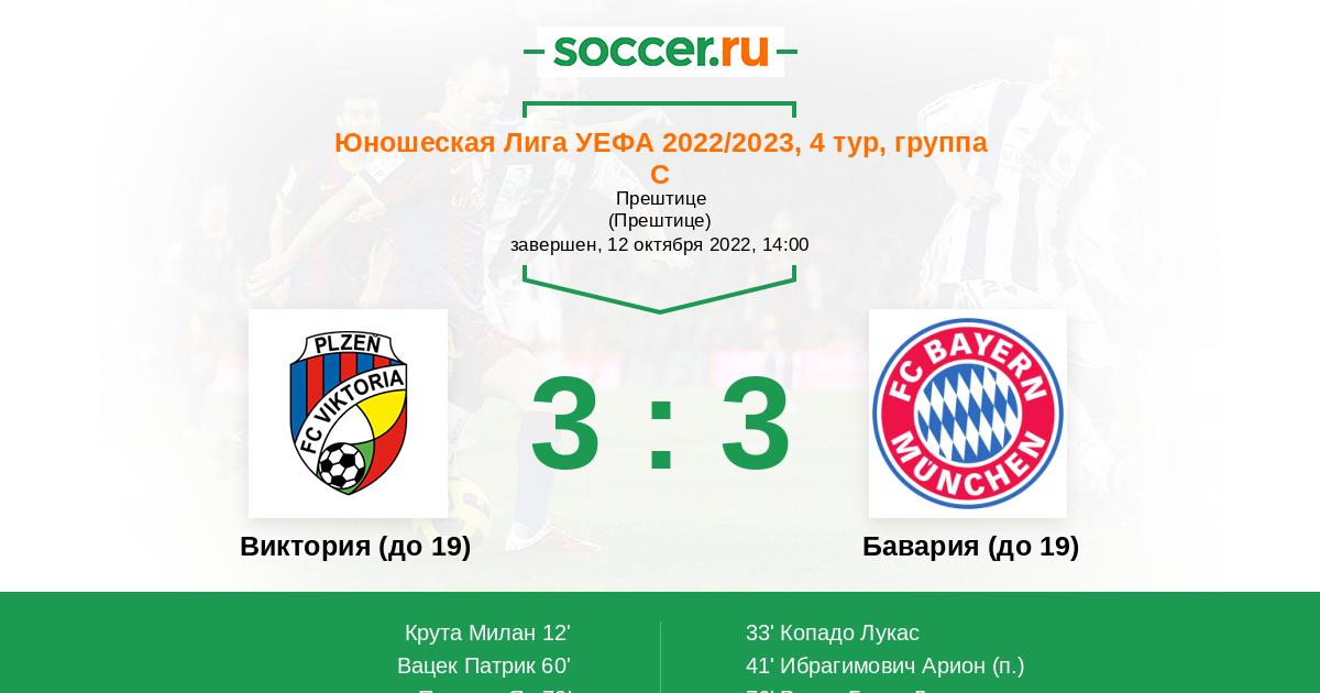 Протокол матча Виктория (до 19) против Бавария (до 19)