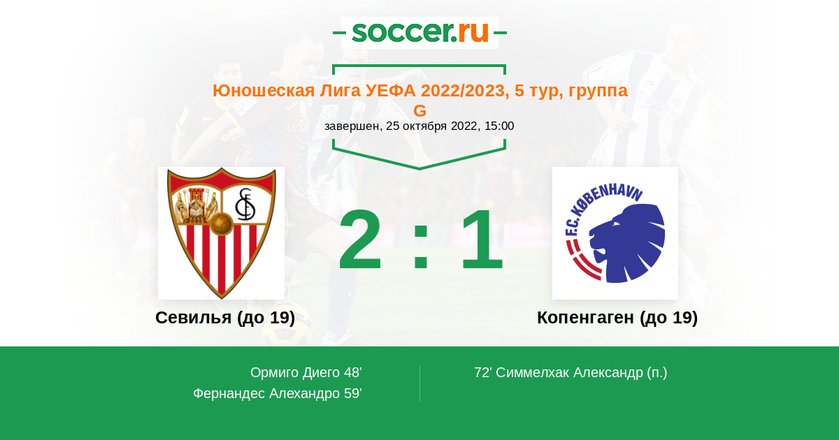 Протокол матча Севилья (до 19) против Копенгаген (до 19)