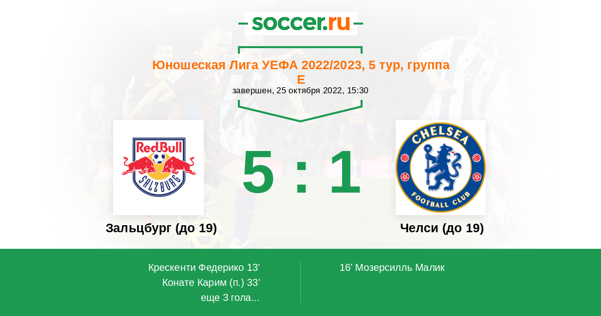 Протокол матча Зальцбург (до 19) против Челси (до 19)