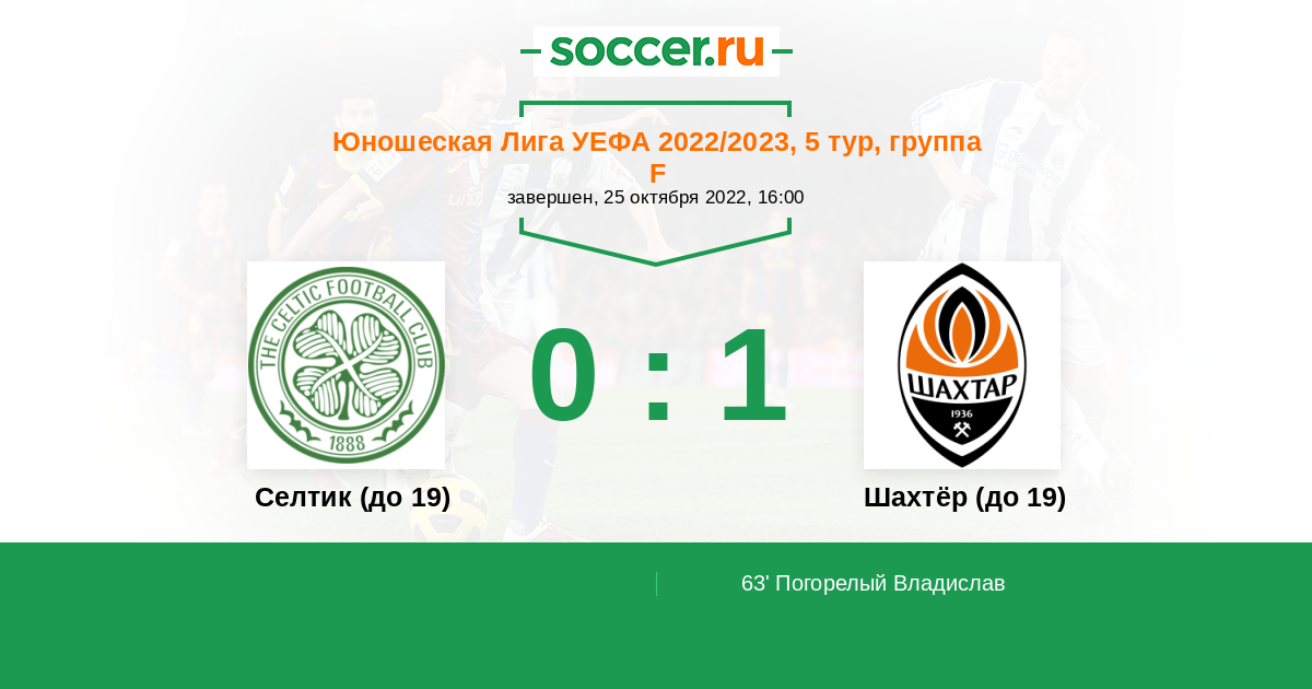 Протокол матча Селтик (до 19) против Шахтёр (до 19)