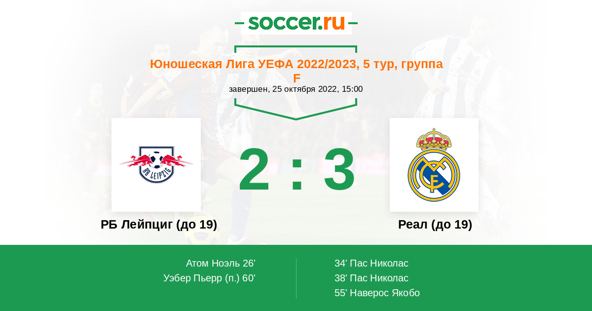 Протокол матча РБ Лейпциг (до 19) против Реал (до 19)