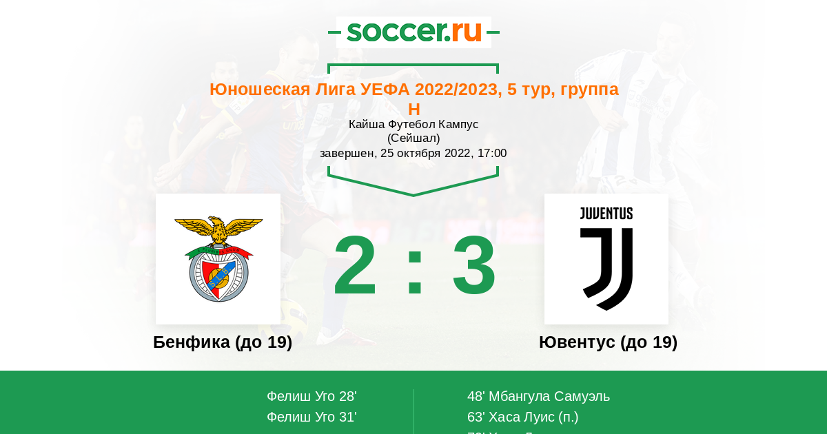 Протокол матча Бенфика (до 19) против Ювентус (до 19)
