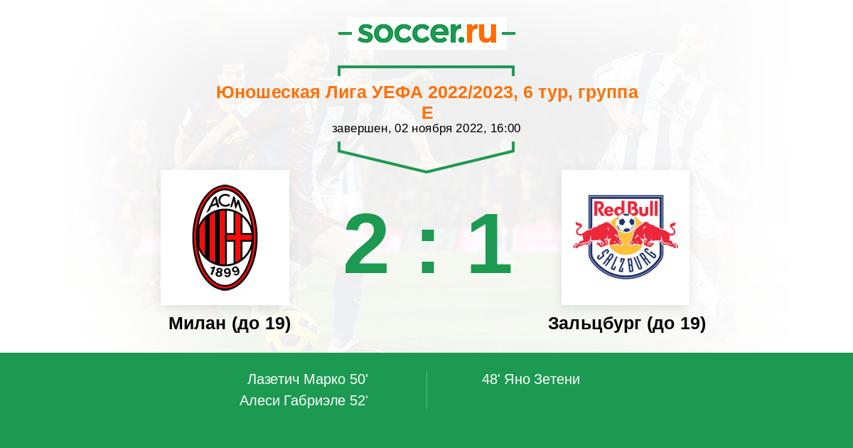 Протокол матча Милан (до 19) против Зальцбург (до 19)