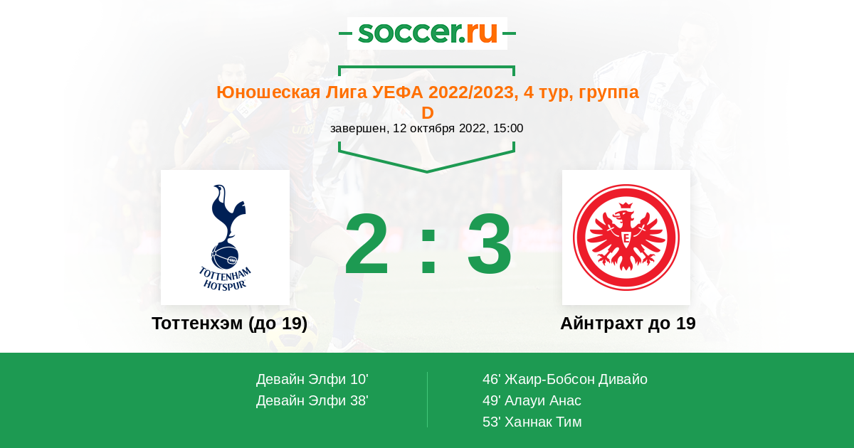 Протокол матча Тоттенхэм (до 19) против Айнтрахт до 19