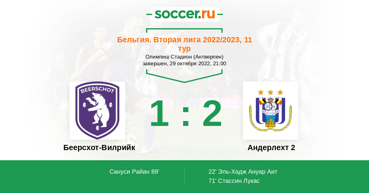 Протокол матча Беерсхот-Вилрийк против Андерлехт 2