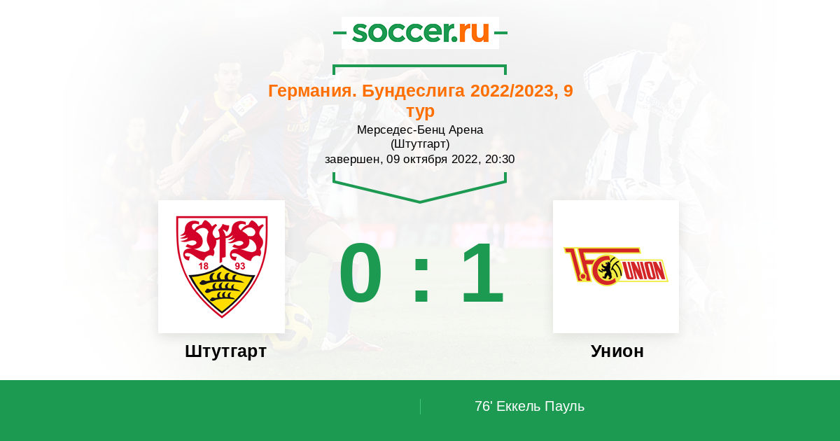 Тяжелый матч для обеих команд. Унион добился результата, но видно, как непросто дается набор очков. Уже ощущается нехватка хороших запасных и кажется скоро берлинцы опустятся на более привычные позиции. Но пока достигают максимума при ограниченных ресурсах. После этого матча уместно вспомнить старую классику: "Игра забудется, а результат останется".  Штутгарт даже оставшись в меньшинстве, сумел потрепать нервы соперников в концовке и провел достойный навал. Надеюсь останутся в высшей лиге.