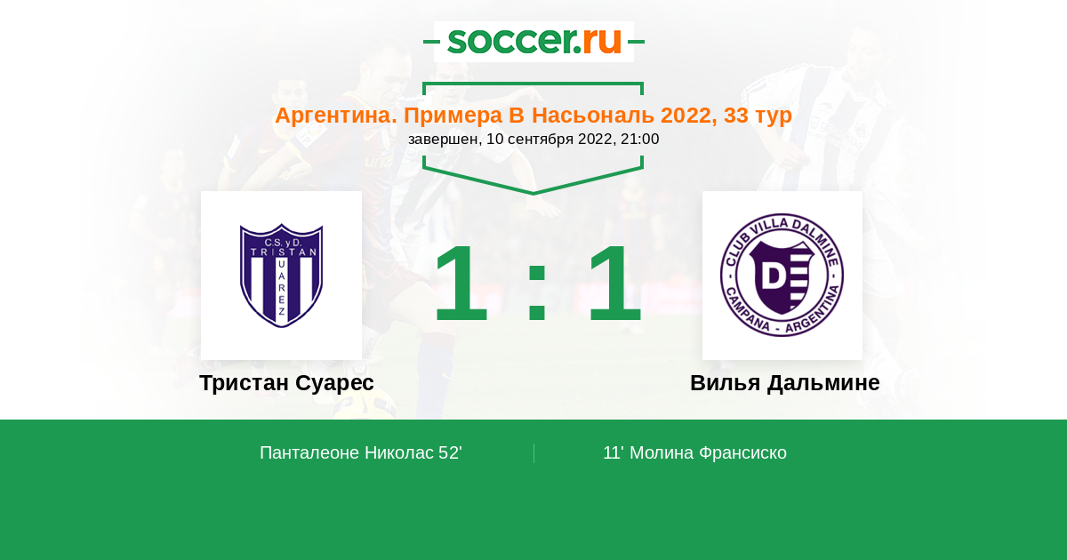 Протокол матча Тристан Суарес против Вилья Дальмине