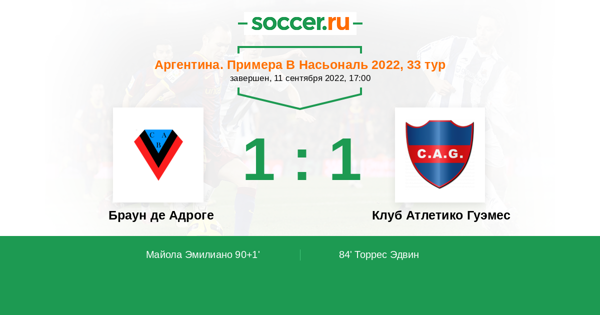 Протокол матча Браун де Адроге против Атлетико Гуэмес