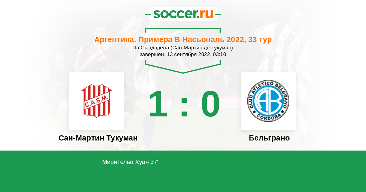 Протокол матча Сан-Мартин Тукуман против Бельграно