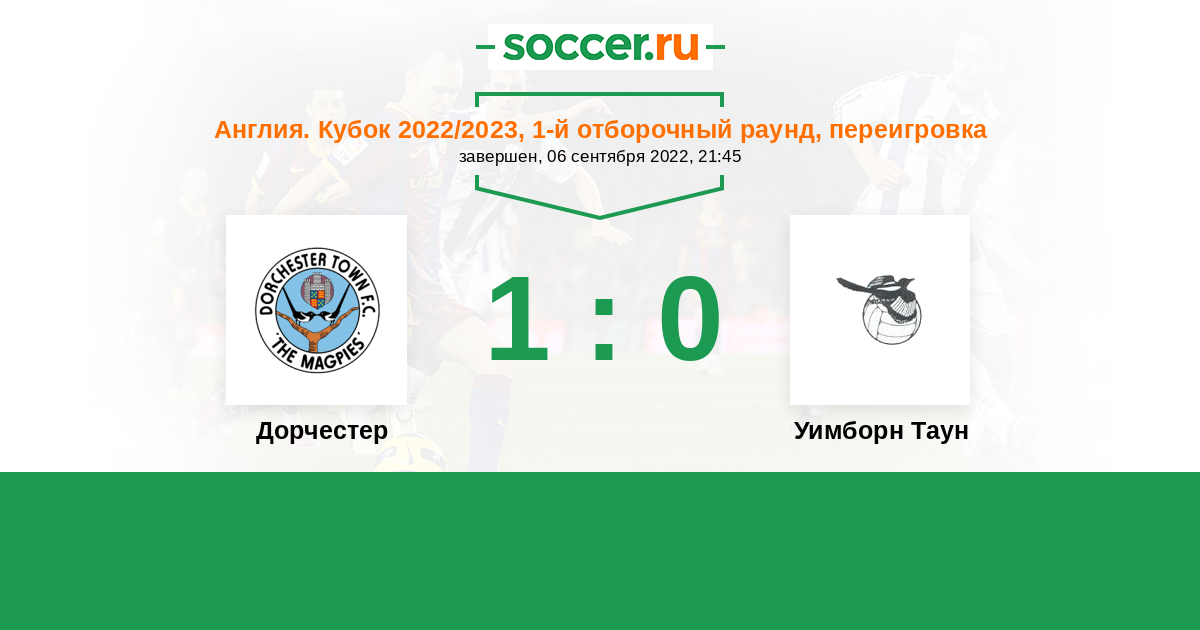 Англия. Кубок 06.09.2022 Дорчестер Логотип футбольный клуб Дорчестер 1:0 Логотип футбольный клуб Уимборн Таун (Уимборн Минстер) Уимборн Таун
