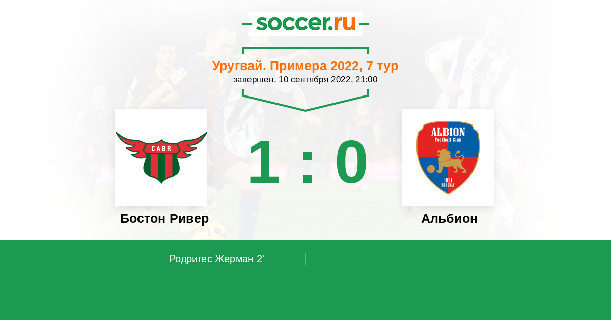 Протокол матча Бостон Ривер против Альбион