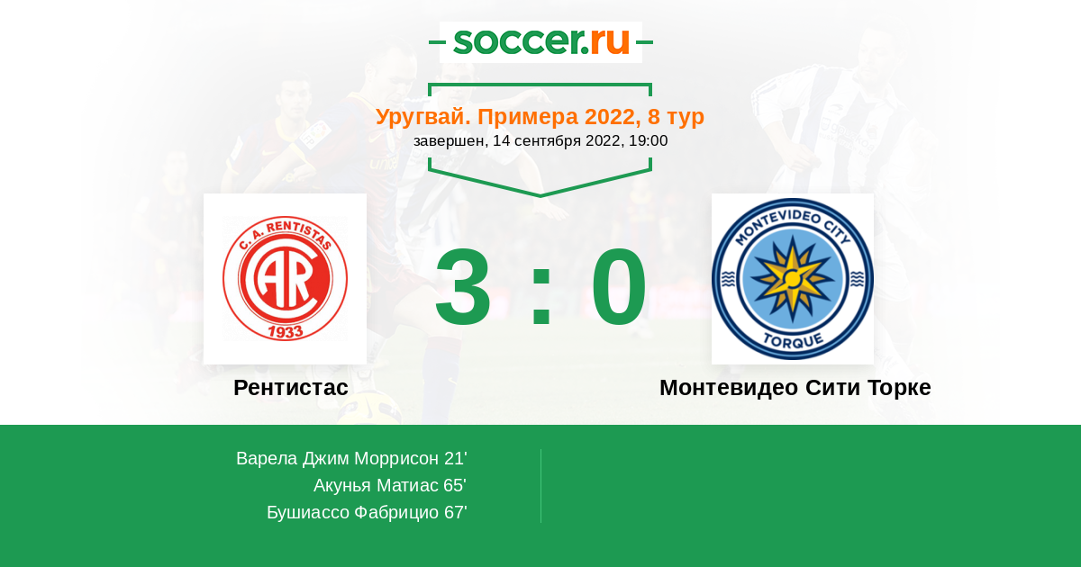Протокол матча Рентистас против Монтевидео Сити Торке