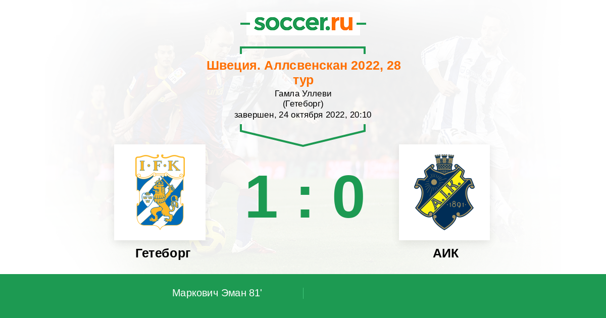 Протокол матча Гетеборг против АИК