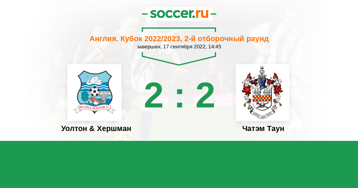 История матча Уолтон & Хершман против Чатэм Таун