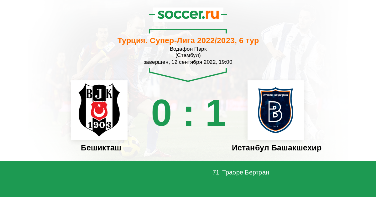 Протокол матча Бешикташ против Истанбул Башакшехир