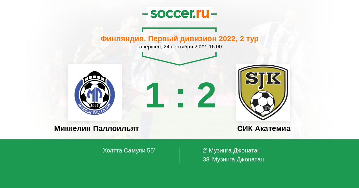 Протокол матча Миккелин Паллоильят против СИК Акатемиа