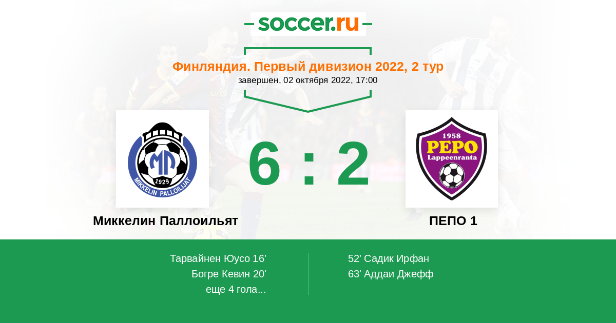 Протокол матча Миккелин Паллоильят против ПЕПО 1