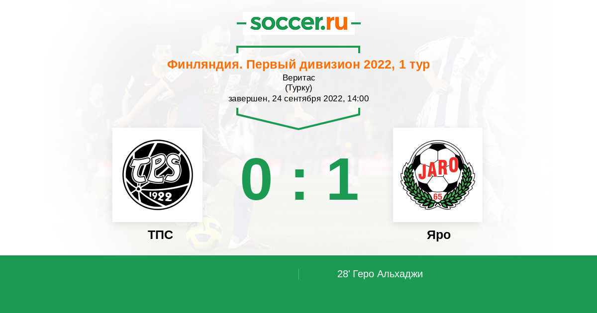 Протокол матча ТПС против Яро