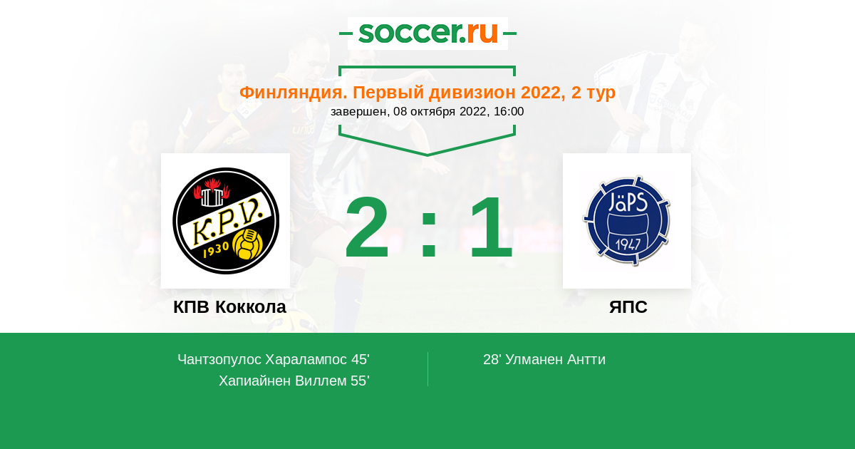 Протокол матча КПВ Коккола против ЯПС
