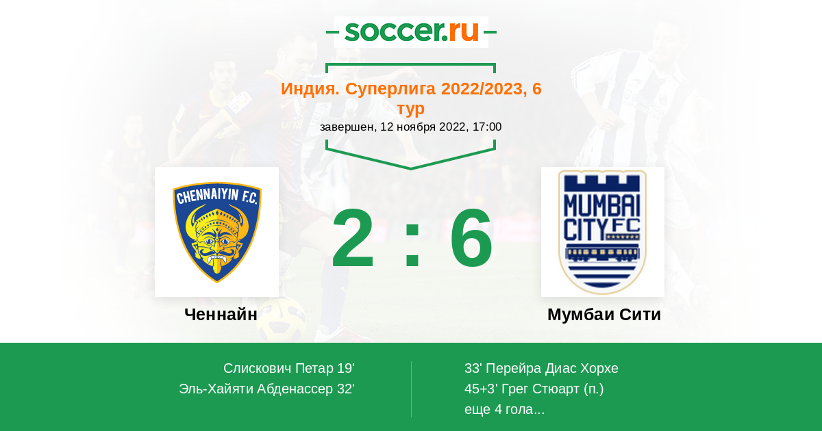 Протокол матча Ченнайн против Мумбаи Сити