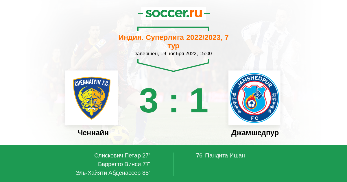 Протокол матча Ченнайн против Джамшедпур