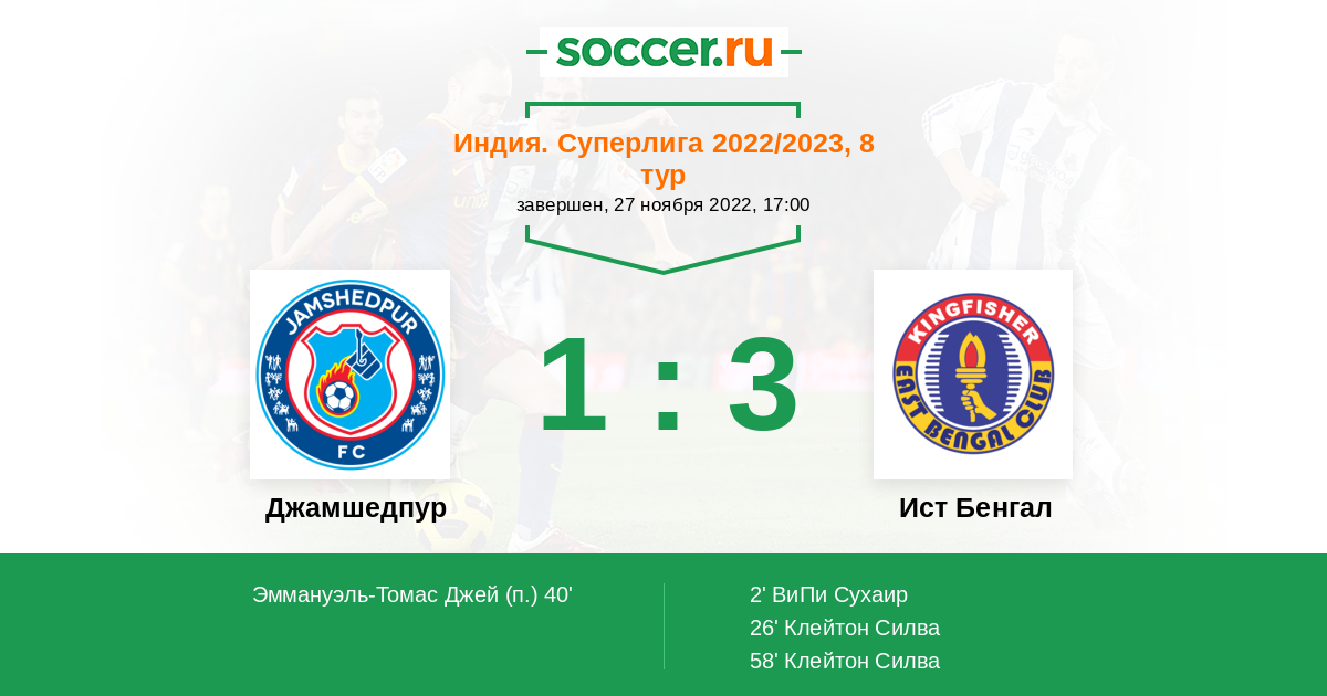 Протокол матча Джамшедпур против Ист Бенгал