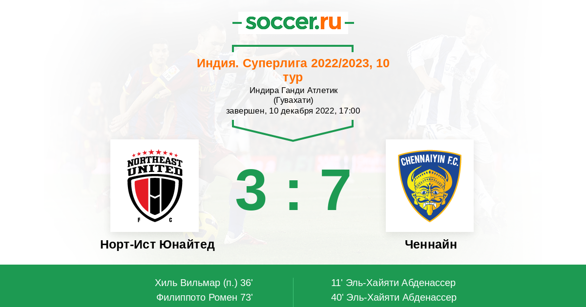 Протокол матча Норт-Ист Юнайтед против Ченнайн