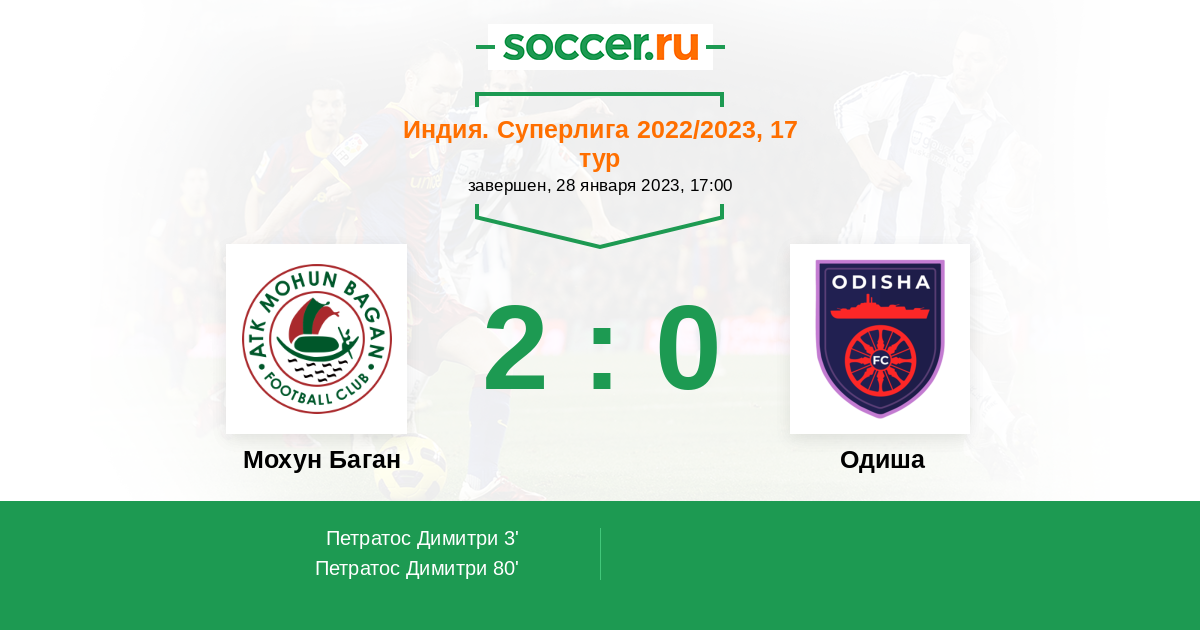 Протокол матча Мохун Баган против Одиша