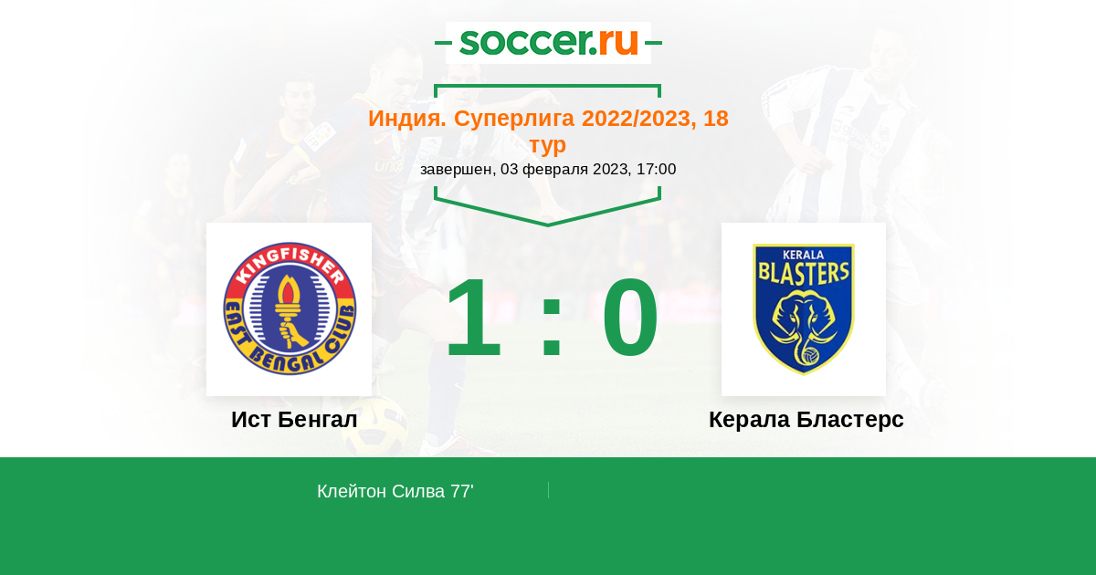 Протокол матча Ист Бенгал против Керала Бластерс