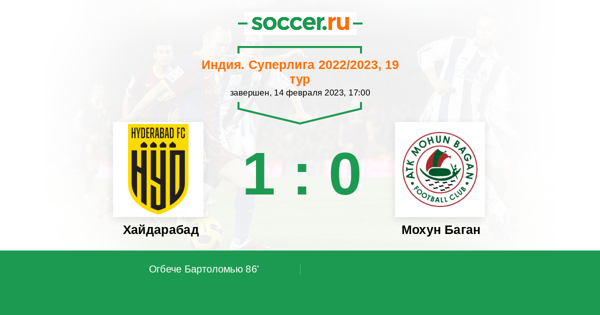 86' (1:0) Огбече Бартоломью (20) (Эррера Борха (26))