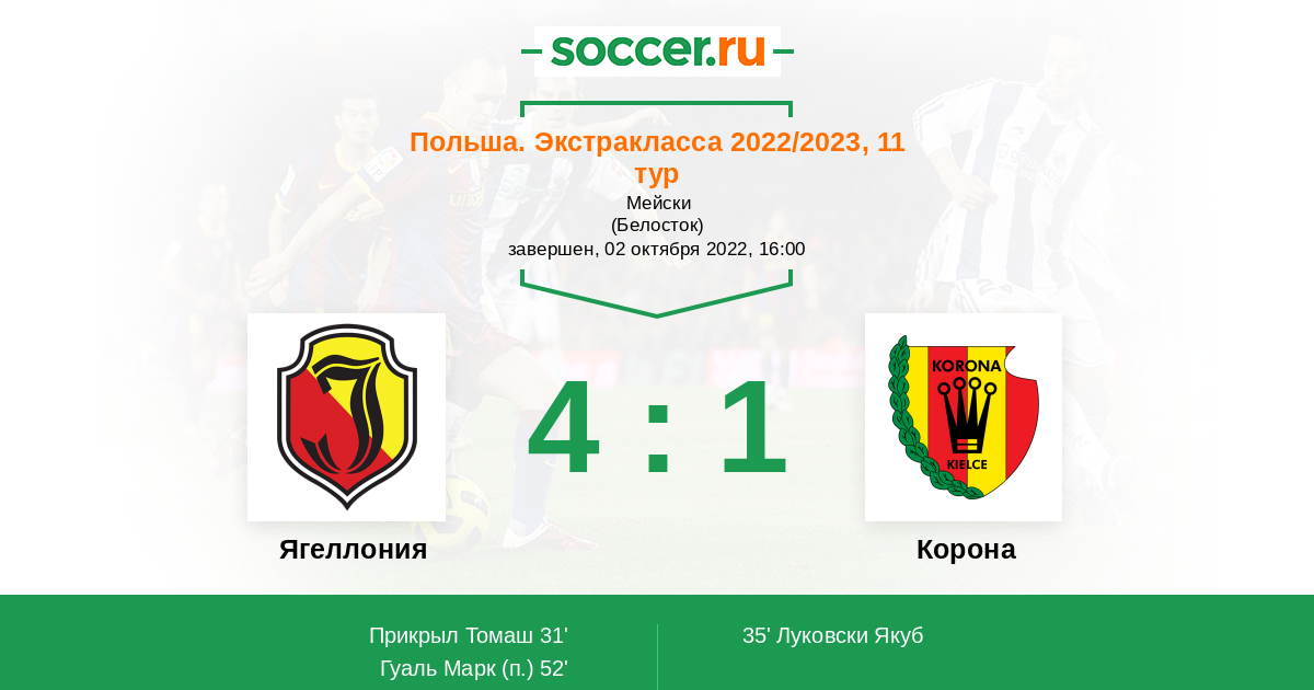 Протокол матча Ягеллония против Корона