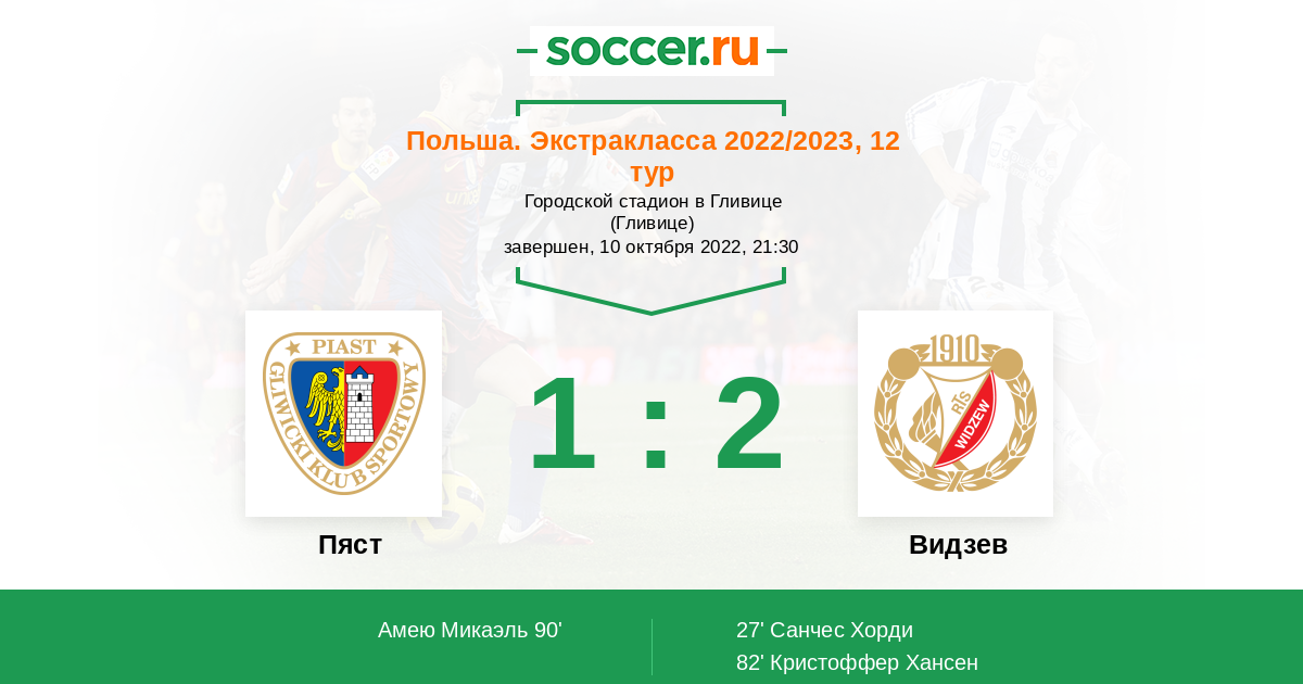 Протокол матча Пяст против Видзев