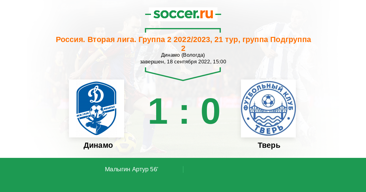 Протокол матча Динамо Вологда против Тверь