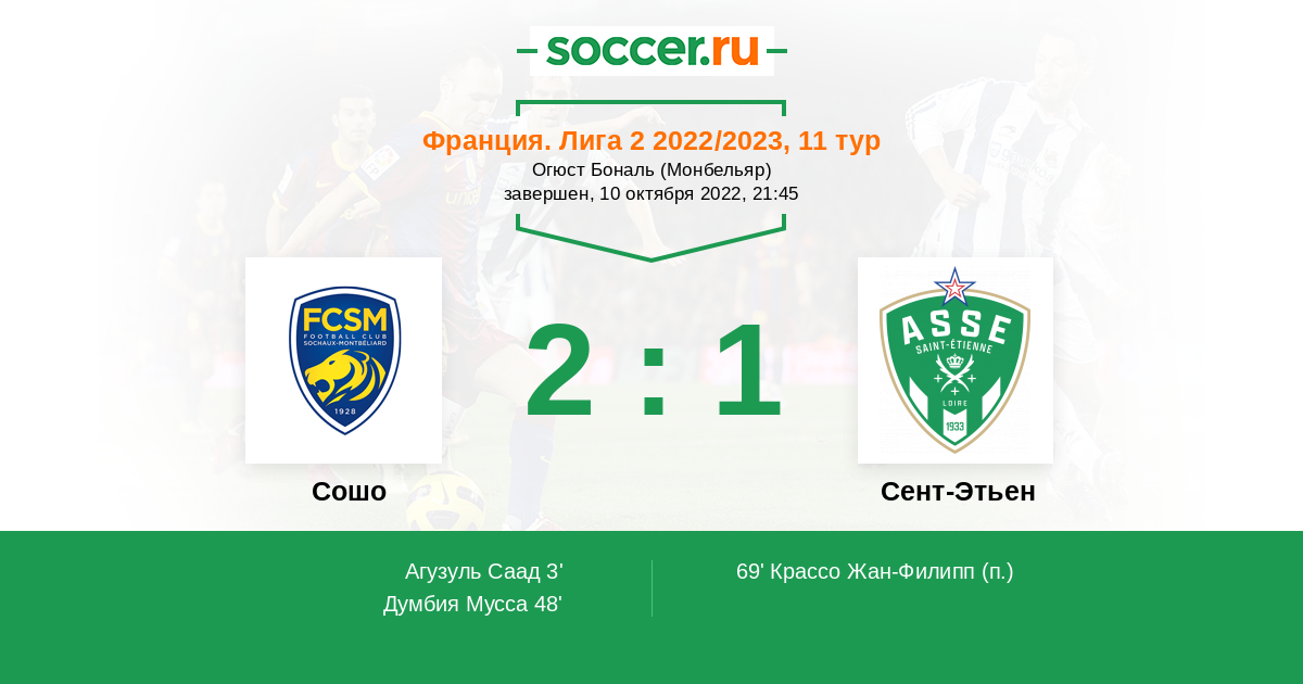 3' (1:0) Агузуль Саад (5) (Вейсбек Гаэтан (10))