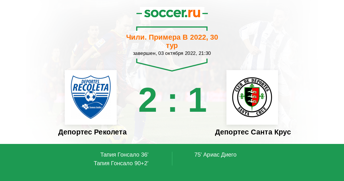 Протокол матча Депортес Реколета против Депортес Санта Крус
