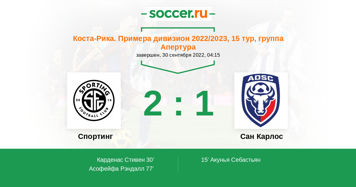 Протокол матча Спортинг Сан-Хосе против Сан Карлос