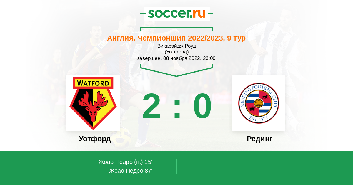 Протокол матча Уотфорд против Рединг