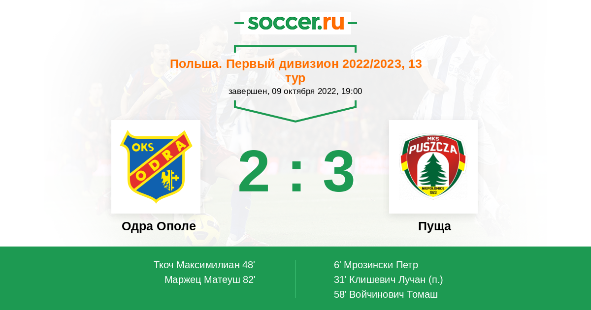 Протокол матча Одра Ополе против Пуща