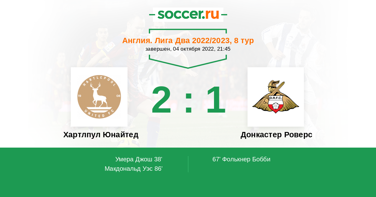Протокол матча Хартлпул Юнайтед против Донкастер Роверс