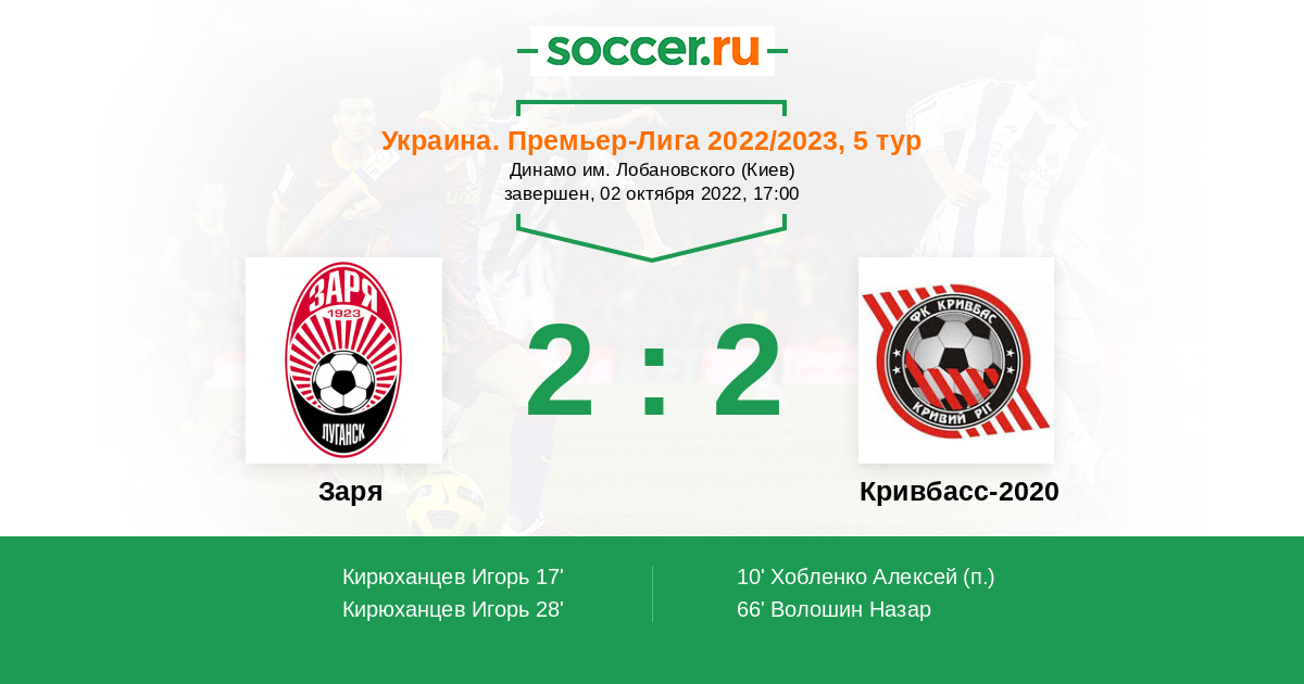 Протокол матча Заря против Кривбасс-2020