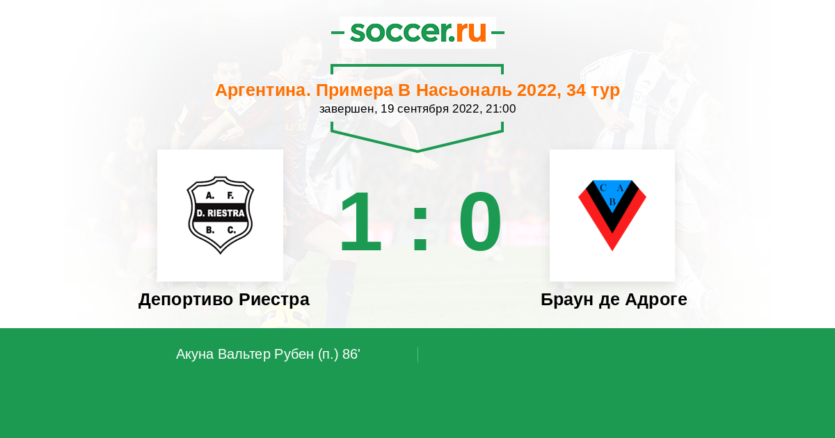 Протокол матча Депортиво Риестра против Браун де Адроге